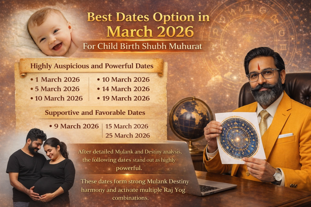Discover highly auspicious dates in March 2026 for child birth Shubh Muhurat with powerful Raj Yog as per Vedic Numerology. Learn Mulank, Destiny Number, and cesarean Muhurat guidance by Acharya Devraj Ji for a healthy, lucky, and successful baby.
